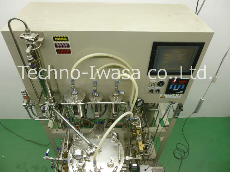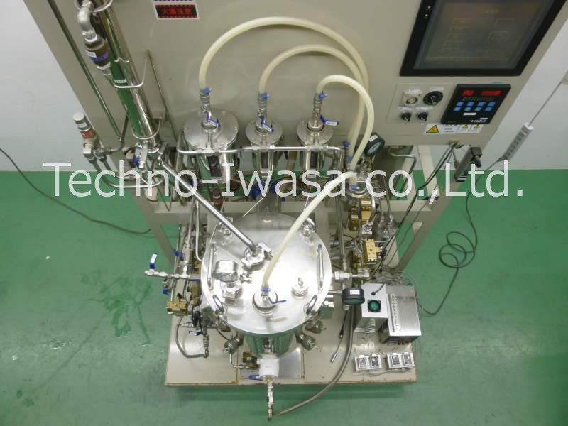 | 仕 様 | 培養槽容量:30L 計測制御:攪拌.温度.PH.DO.消泡.圧力.空気流量 攪拌:方式:下部攪拌又は上部攪拌 :メカニカルシ-ル直動型 :攪拌翼:1/2D-6枚x2枚 滅菌方式:スチ-ム滅菌(手動又は自動) 温調:方式:ジャレット水ポンプ循環式 :範囲:供給水温+5℃〜50℃(培養時) 電源:三相200V及び100V